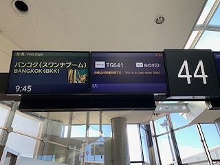 | バンコク(スワンナプール)行 成田発9時45分予定が大幅に遅れている。 機体の予定が付かないらしい。 |