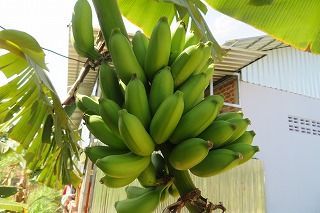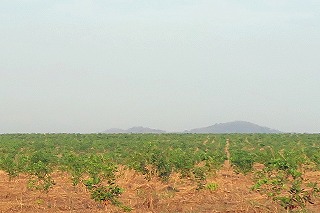 キャッサバ畑 各地で見られる。デンプンの収量が高く、 カンボジアでは作付けが大幅に伸びている。 |