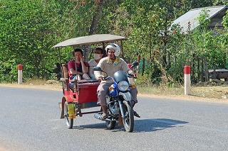 | Tuk-Tuk バイクが荷室を引いたTuk-Tuk タクシーとして使われている。 特に、都市では沢山見る。 |