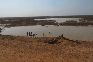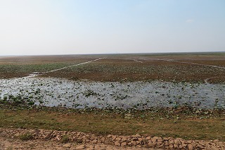 巨大貯水池 乾期のため水は少ない。 沢山の水辺の鳥が生息している。 |