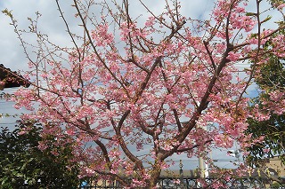 おひさま食堂 庭には河津桜がほぼ満開。 家の近くにも河津桜があるが、蕾硬し。 |
