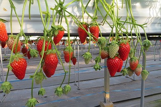 いちご狩り ハウスの中はいちごがいっぱい。 |