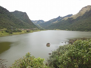 | エクアドルの富士山 峠からはエクアドルの富士山と日本人が呼ぶ火山が雲の中に有った。標高5,900m。 峠も4,000mを超えている。 |