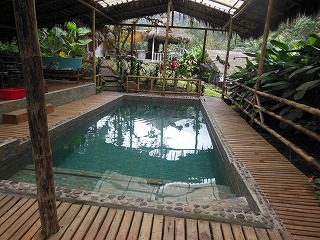 ロッジにはプールがある。 | 温水プールもある。 |