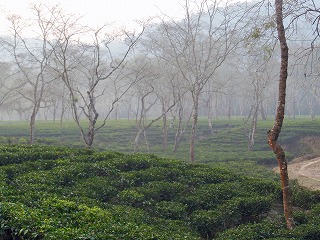 茶畑 アッサムと言えば高級紅茶の産地 日本の茶畑と違って林の中にある。 |