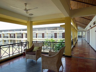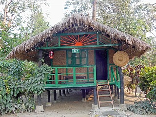 | 私達の宿泊棟は藁葺で高床式 外は暑くても室内は涼しい。 |