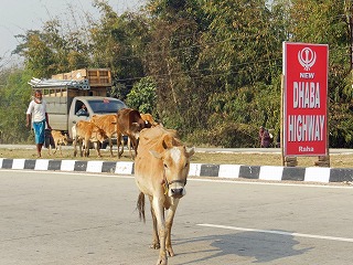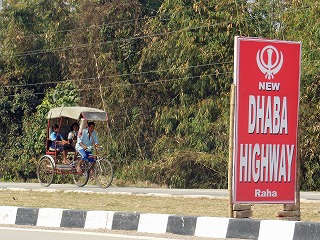 | Guwahati空港へ 途中の衣料品マーケット | Dhaba Highway 荷台にも乗車 | ハイウェイでもリキシャは走る。 |