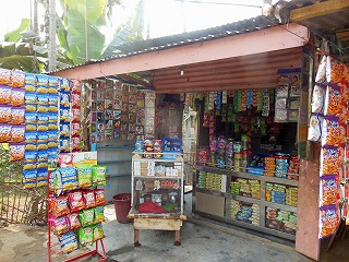 | スナック菓子の売店がどこにもある。 この店でお勧めのアッサム歌謡のCDを 買ったが再生できなかった。 |