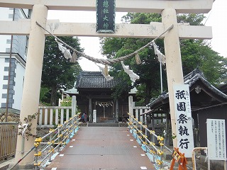 淡海國玉神社 大国主命を祀る神社で、旧見付学校の隣に ある。 丁度改修工事中であった。 |