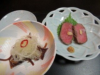 | 飛騨牛のローストビーフ それに酢の物。 |