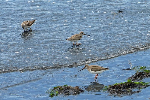 | キアシシギが随分増えた。全長 23-27cm | 干潟でも餌探しに忙しい。 |