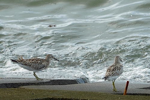 | 左は夏羽の名残りが見られる。 | 波が被らんばかりに。全長 26-28cm |