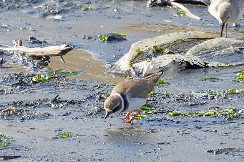 | ハマシギに混ざって1羽。何と言っても鮮やかな オレンジ色の足。 |