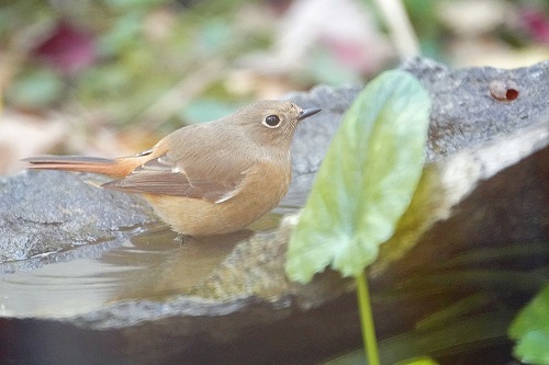 庭の水場で水浴びをした。全長 14cm