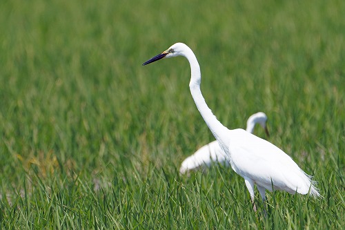 チュウサギとすれ違うと大きい。全長 80-104cm