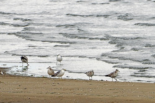 遠くの砂地に降りている。