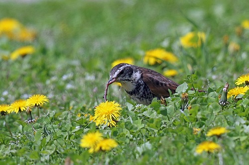 タンポポの咲く中でミミズを獲った。 まだ少し滞在するだろう。