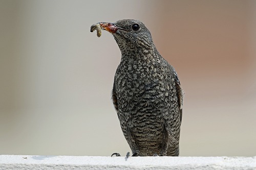 昆虫の幼虫とクモかな。一方、雄は近くで囀っている。