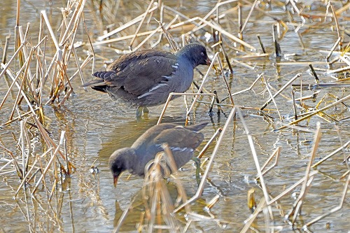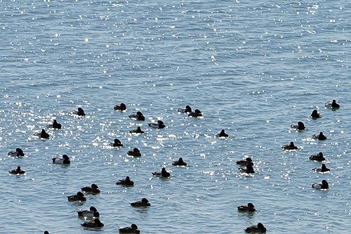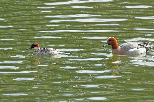 この池にはハシビロガモも多い。グルグル回って採餌を始めた。