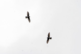 ハシブトガラスとバトル。全長雄 27cm、雌 51-63cm