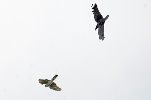 ハシブトガラスを追いかけたり、