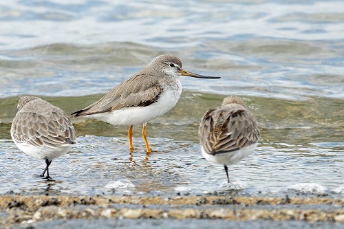 ハマシギの前では黄色い脚が目立つ。全長 22-25cm