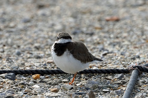 石の間で採餌する。脚が鮮やかなオレンジ色。