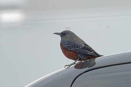 車の屋根にとまった。