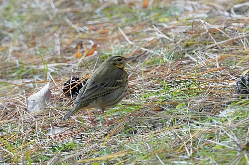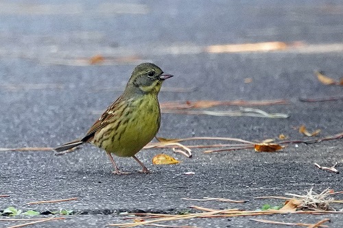直ぐ隠れるアオジが舗装道路まで出ていた。