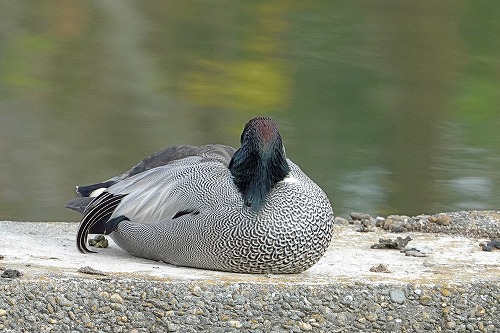 さざ波の中でも寝たまま。三列風切りが伸びている。