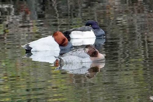 ここでは珍しいホシハジロが。