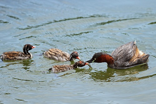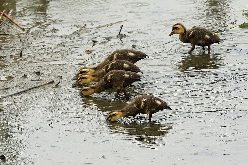 | 4羽孵ったが、3羽になってしまった。全部が育つのは難しい。 運んでくるエサはヌマエビ?が多い。 |