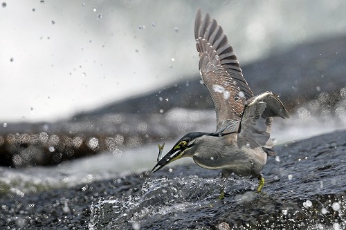 | 脚が流されそうに、ブラブラしながらチャッチ! |