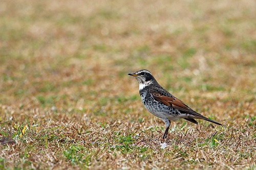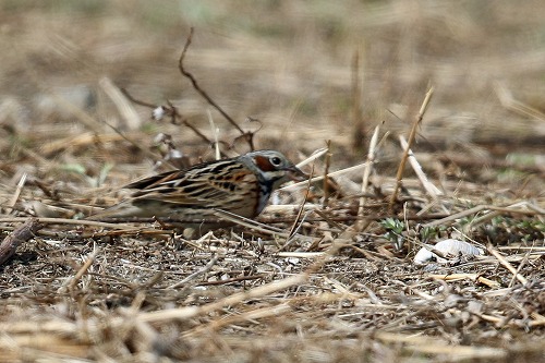枯れた草地で餌拾い。