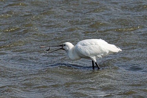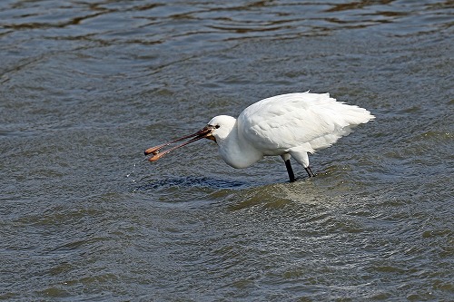 水面・水中で嘴を上手く使う、独特のエサの捕り方。