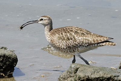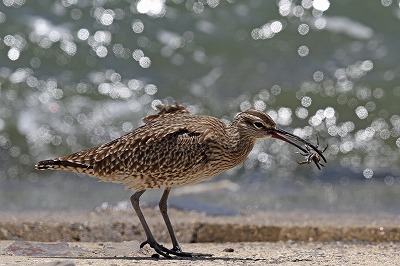 チュウシャクシギ これくらいのカニなら丸呑み |