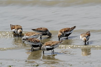 | キョウジョシギ 流れ着いた藻の下の小動物を捕っていた。 |