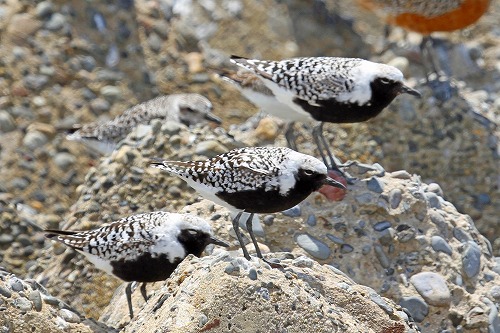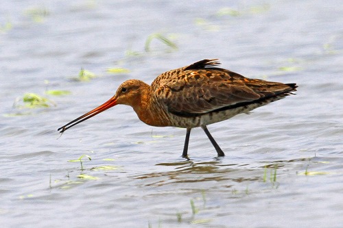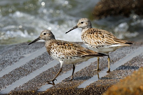 | オオソリハシシギ みな夏羽。全長 37-41cm | ダイゼン みな夏羽。全長 27-31cm |