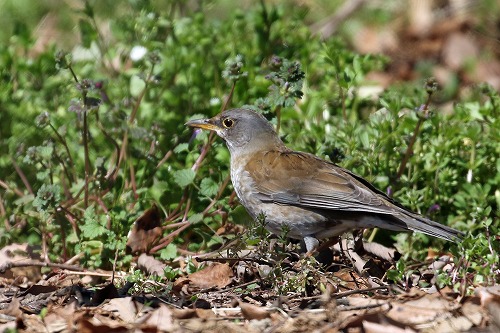 | 庭にツグミが来て落葉の下から何か餌を獲っている。 | 何を食べているかはっきりしないが、結構穴掘り。 |