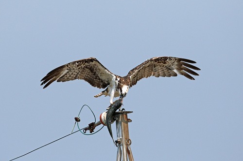 | 獲物は大きなボラ。 | 帰りに通りかかると頭部をかなり食べていた。 |