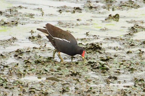 | 雛はすぐに隠れるのではっきりしないが、6、7羽いると思われる。 |