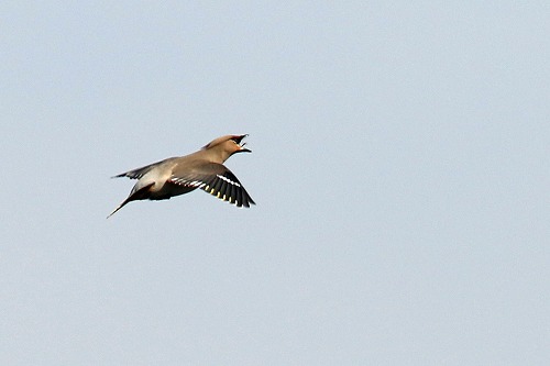 | 数が少ないので、飛び立つと見失ってしまう。 | 何とか! ヒレンジャクの中で。 |