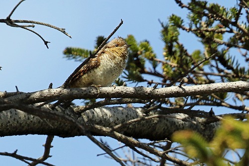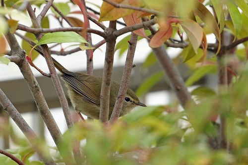 | 自宅の庭で、覚束ない囀りで枝移りしているのを見つけた。 | 同日、近くでツバメ2羽を見て、嬉しい日になった。 |