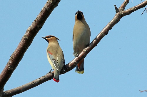 | ヒレンジャク(左)よりちょっと大きく見える。 キレンジャク全長 19-20cm、ヒレンジャク全長 17-18cm (2cm差)。 |