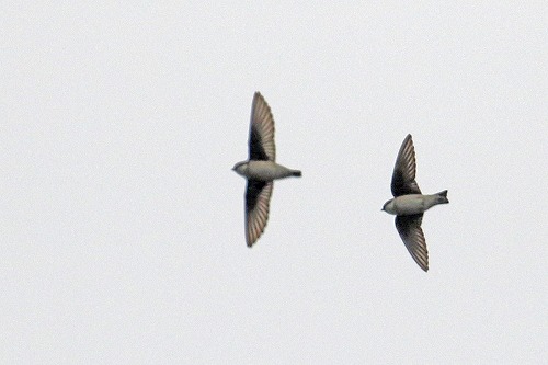 | レンジャクの上に沢山の鳥が旋回。 全長 13cm | 上空ではイワツバメの群がエサ取り。 |
