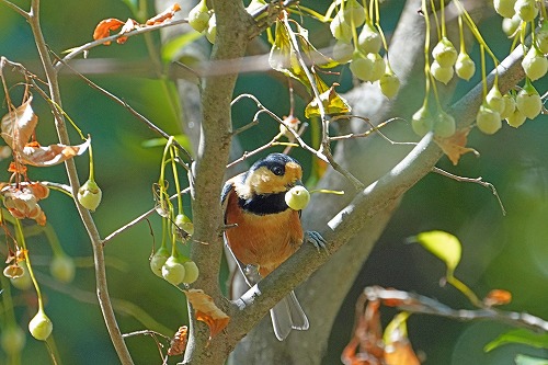 | エゴノキの実が熟してきた。 エゴノキにヤマガラが集まって来る。全長 14-15cm |