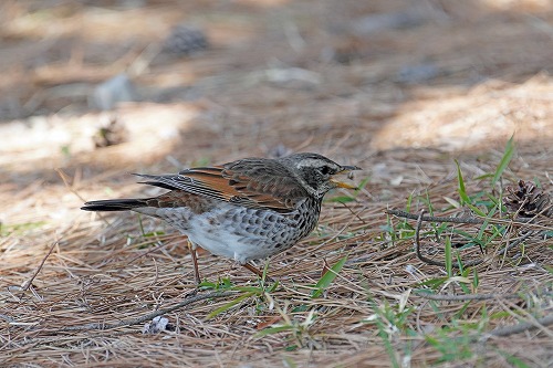 | 枯れ松葉の場所にいることが多い。 全長 14-15.5cm | 何か食べるものがあるのか? |