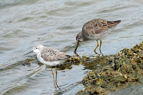 | こちらも3月15日以来の再会。 | コアオアシシギといつも一緒にいる。 |