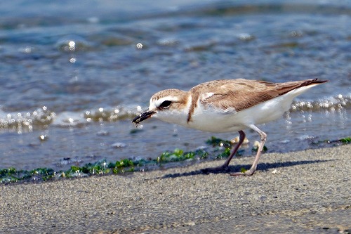 | 久しぶりにシロチドリが2羽。水辺で蟹を捕った。 | このまま丸呑みにする。全長 15-17.5cm |