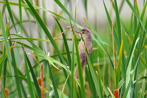 頭に2本の冠羽がある夏羽の名残り。 アマサギ、コサギなど小型のサギが少ない。 |